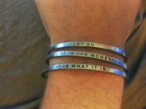 I enjoy having them around even if I’m not wearing them. Just seeing the words on them reminds me that I’m OK. I’m reminded to just “let it go” and that “it is what it is”. Having those constant reminders helps me deal with anxiety and focus on living in the moment rather than stressing about what may come.